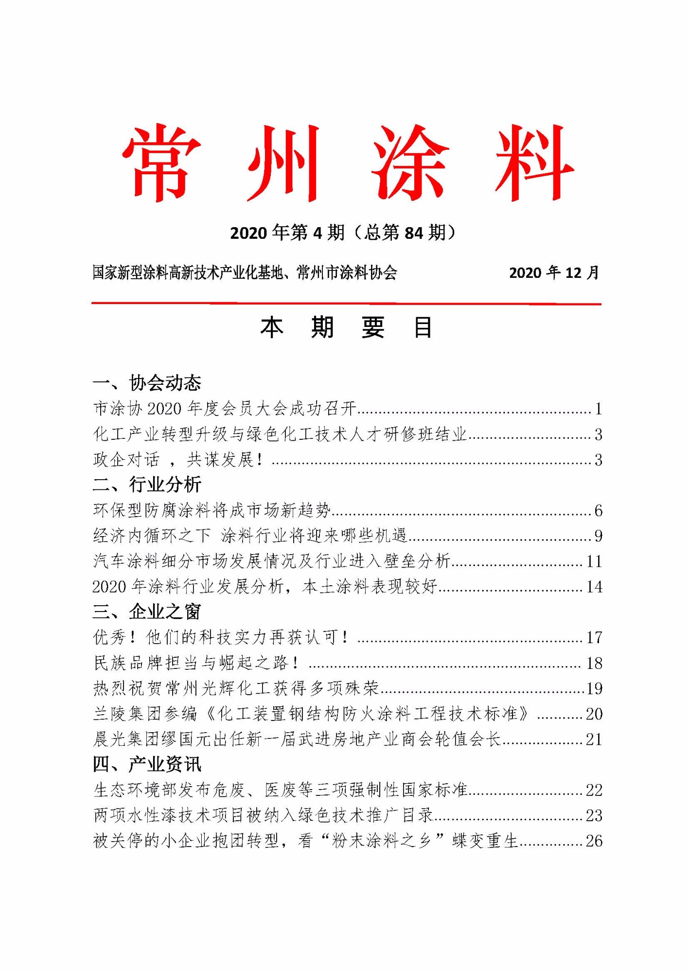 常州涂料簡報2020年第4期(總第84期)
