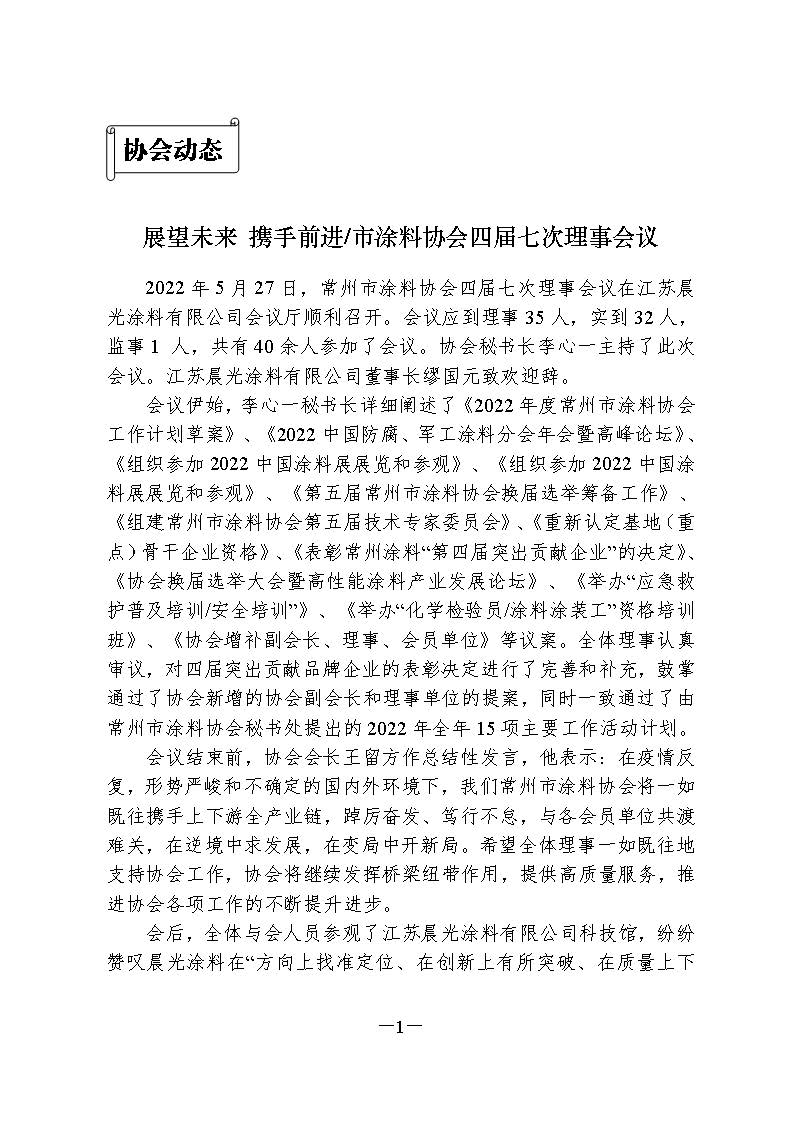 : 常州涂料簡(jiǎn)報(bào)2022年第1期(總第89期)