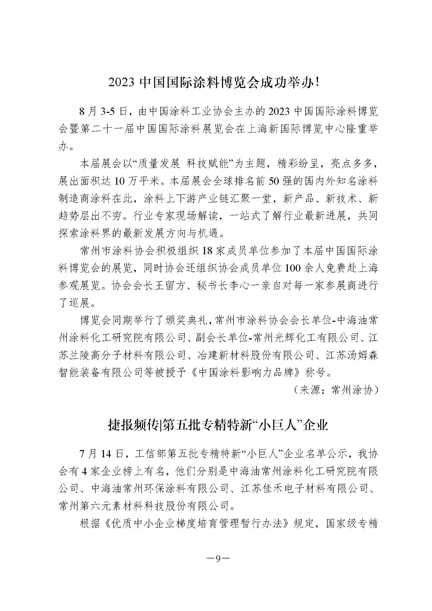 2023年常州涂料簡報第3期(總第95期)